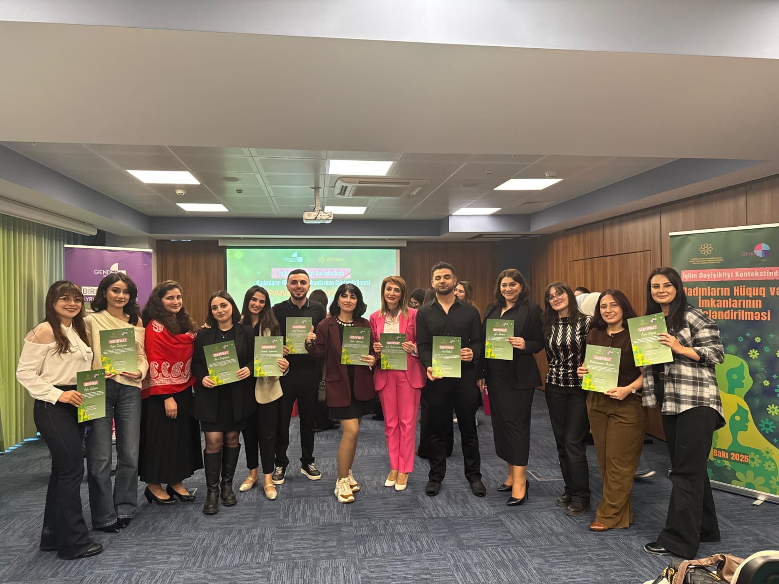 12 dekabr 2025-ci il tarixində Fəlsəfə və Sosiologiya İnstitutunun Davamlı inkişafın fəlsəfəsi və sosiologiyası şöbəsinin elmi işçisi Hafizə İmanova Gender Hub Azərbaycanın təşkilatçılığı ilə İbis Baku Otelində keçirilən "İqlim dəyişikliyi kontekstində gender bərabərliyi: qadınların hüquq və imkanlarının gücləndirilməsi" mövzusunda təlimin yekun hesabat panelində iştirak edərək sertifikatla təltif edilmişdir. Hafizə İmanova müxtəlif dövlət və qeyri-hökumət təşkilatlarında təlimlər verərək 5 aylıq treyninq-proyekt proqramını müvəffəqiyyətlə başa vurmuşdur. O, yekun hesabatda təlimlərin geniş sayda qadınlara və qızlara çataraq onların iqlim dəyişmələri kontekstində maariflənməsinə və hüquqlarını öyrənmələrinə töhfə verdiyini, onların ailə institutsional müəssisələrində ekoloji təfəkkürlü vətəndaşların yetişməsində necə vacib rol oynadıqlarını da bildirmişdir. Qeyd edək ki, yekun panel müzakirəsində həm Kapital Bank, Paşa Holdinq və s. kimi yerli qurumlarla yanaşı BMT-nin Baş Ofisinin nümayəndəliyi, o cümlədən qeyri hökumət təşkilatlarının da nümayəndələri və gender, iqlim dəyişmələri, dayanıqlı inkişaf üzrə mütəxəssislər də iştirak etmişdir. Tədbirin sonunda BMT-nin Baş Ofisinin Rezident Əlaqələndiricisi Xanım Kanaku Maçibu və Gender Hub Azərbaycanın icraçı direktoru Məryəm Məcidova Hafizə İmanovaya sertifikat təqdim etmişdir.